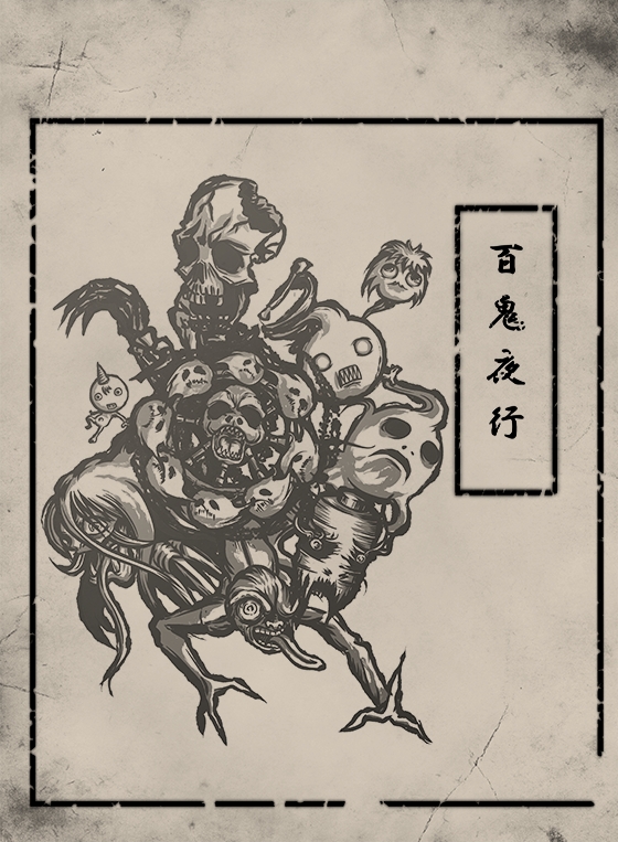 鬼、天狗、狐、猫又、唐傘お化け、のっぺらぼうといった、あらゆる怪異が集団で出現し、町や村を行進。